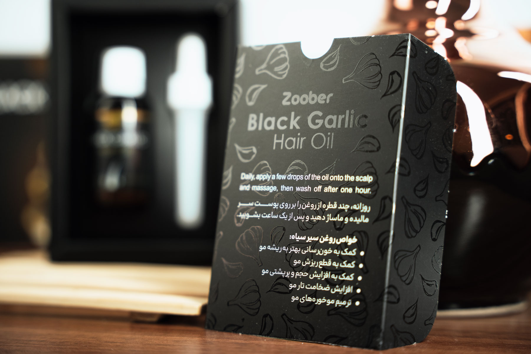 ویژگیها: زوبر با استفاده از سیر سیاه تخمیر شده در شرایط خاص، روغنی تولید کرده که نه تنها به تقویت موها کمک میکند بلکه برای درمان موخوره و ترمیم موهای آسیبدیده معجزه میکند. این روغن حاوی ترکیبات طبیعی بوده و بدون هیچ گونه افزودنی شیمیایی است.